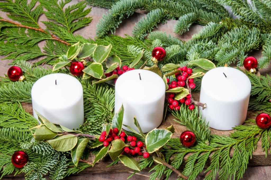 - Centrotavola naturale: raccogli rami di pino, pigne e bacche rosse, e disponili su un vassoio. Aggiungi candele bianche o dorate per un tocco raffinato.